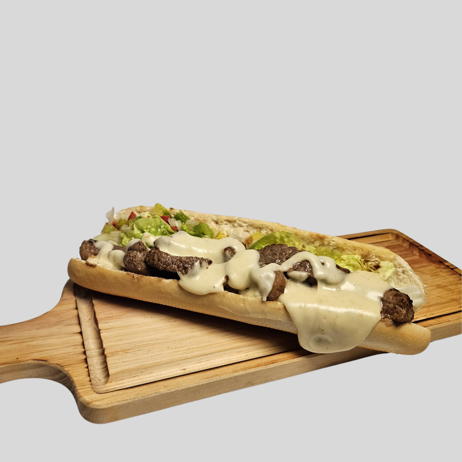 Pan de Baguette - Picanha 300g Vinagreta (tomate, cebolla y pimentos) , Lechuga , Maíz , Crema de Queso cheedar